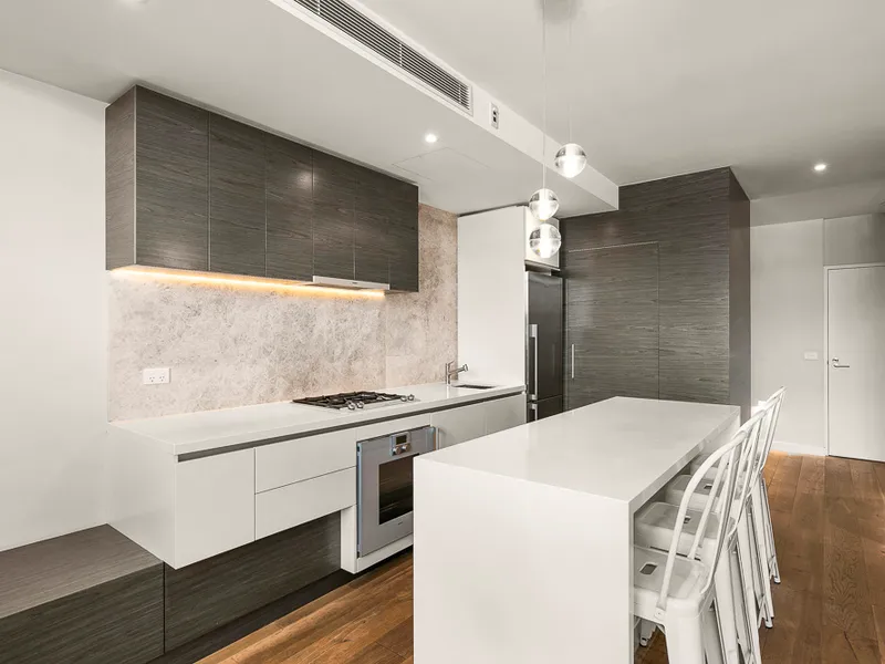 Step inside this sleek and sophisticated apartment, where style takes center stage. The spacious kitchen exudes elegance, boasting tasteful European appliances and smooth stone benchtops.