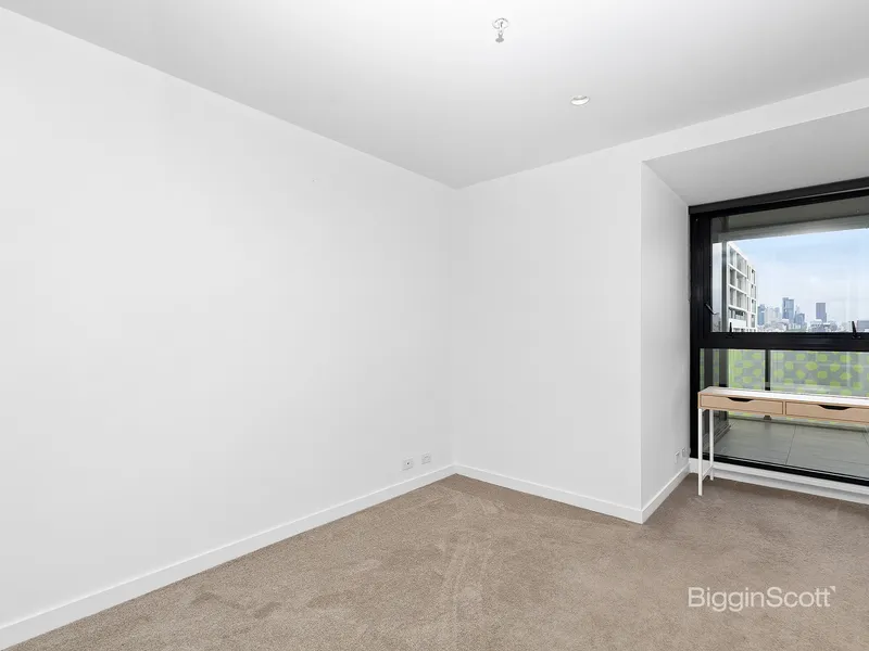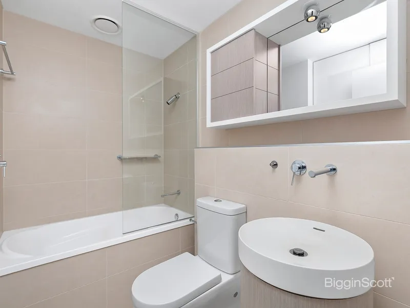 - Two light filled bedrooms are an added benefit. The main bedroom offers floor-to-ceiling windows, a run of mirrored robes and an ensuite bathroom, while the second bedroom offers a practical study nook and is serviced by the main bathroom complete with a bath.