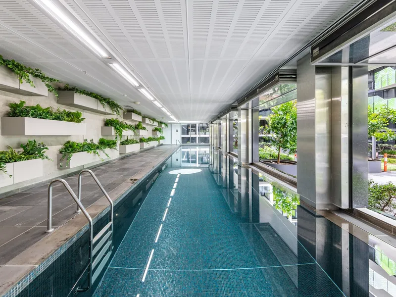 - Many on site facilities are available for the enjoyment of the residents including alfresco BBQ and entertaining areas, library, a fully equipped gym, sauna, indoor lap pool and lobby lounge.