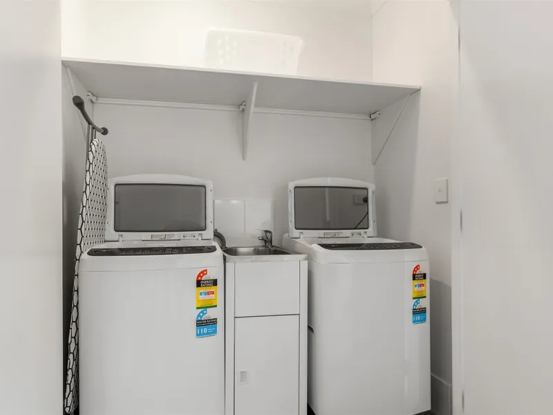 Shared laundry facilities with 2 washing machines, designated parking space included in rent.