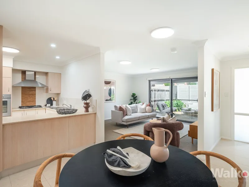 Available 11.4.2026 Freshly painted, well presented 2 bedroom unfurnished townhouse, with open plan living and dining with air conditioning, flowing easily to the courtyard. The stone topped kitchen with gas cooking sits neatly to one side, while a full laundry with handy third w/c and internal access to the double garage rounds out the ground floor. Upstairs, two bedrooms, are serviced by two bathrooms, with the main enjoying its own air conditioner and walk in robe.