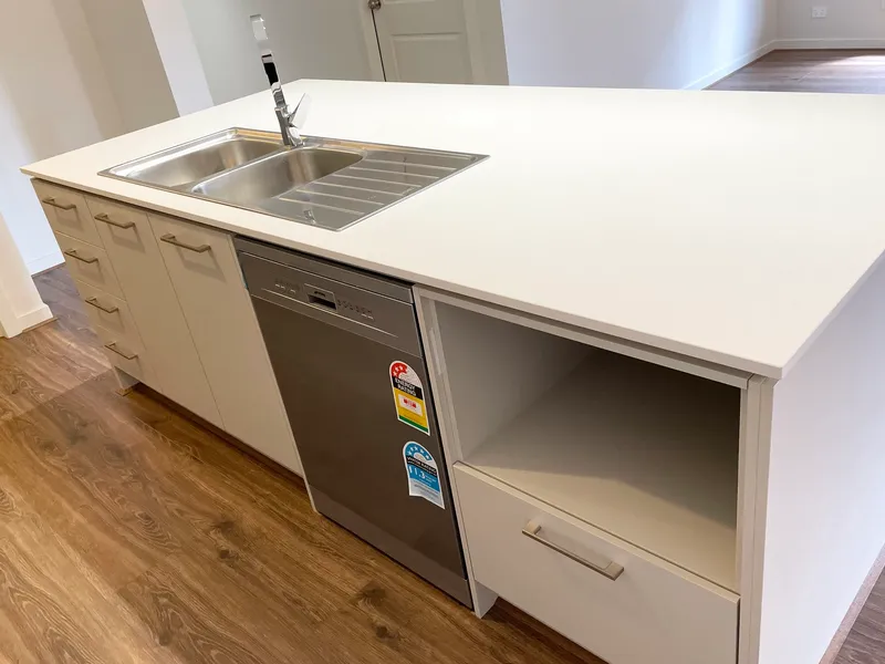 At the heart of the home is a contemporary kitchen equipped with a 1.2m wide bench, walk-in pantry, 900mm stainless steel appliances, and dishwasher. The open-plan design flows seamlessly into the meals and large family area. Additional living spaces include a separate lounge or theatre room.