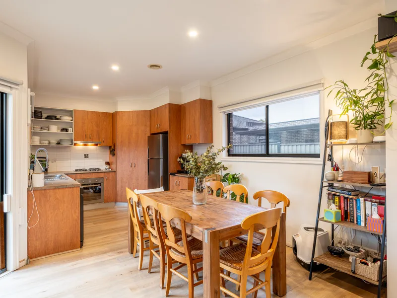 A spacious open-plan living and dining area is the heart of the home, and is adjacent to a well appointed kitchen with excellent storage, dishwasher and gas cooking. Both spaces look out to a bright, private yard/entertainment area, perfect for relaxing or entertaining. Three well sized bedrooms, all with built-in robes, are serviced by a central bathroom. A secure double garage, euro laundry and split system AC units throughout the home ensure convenience and year-round comfort!