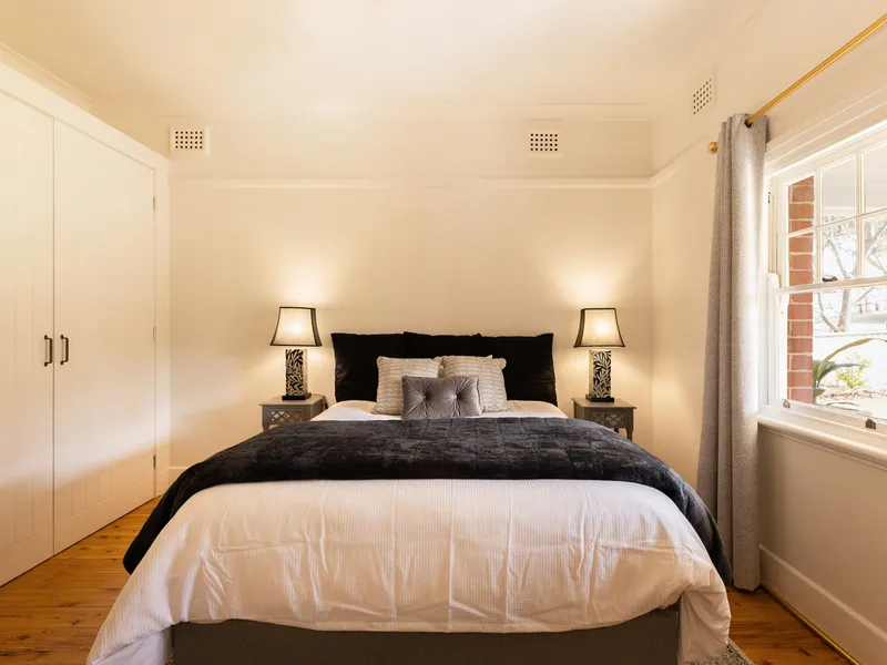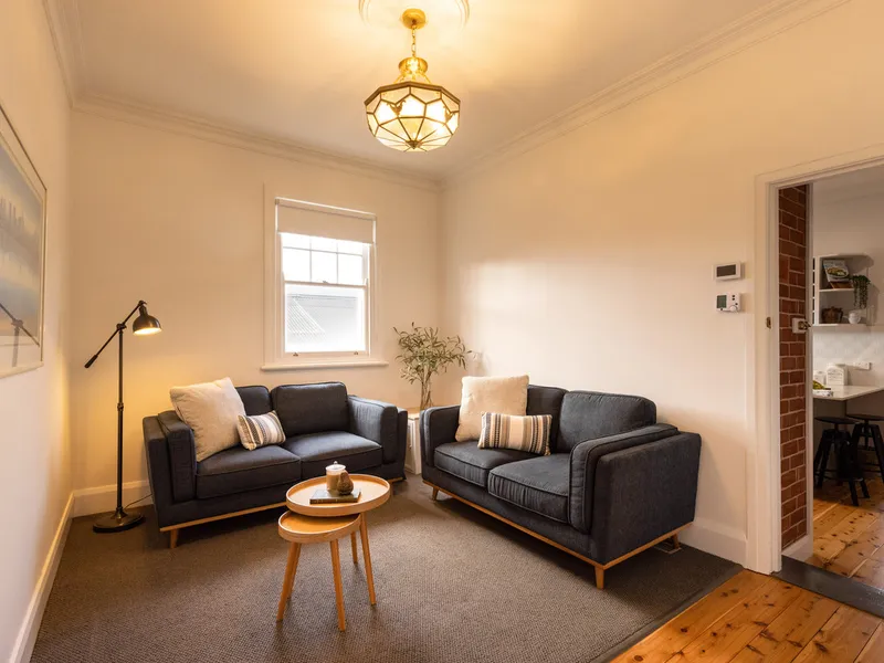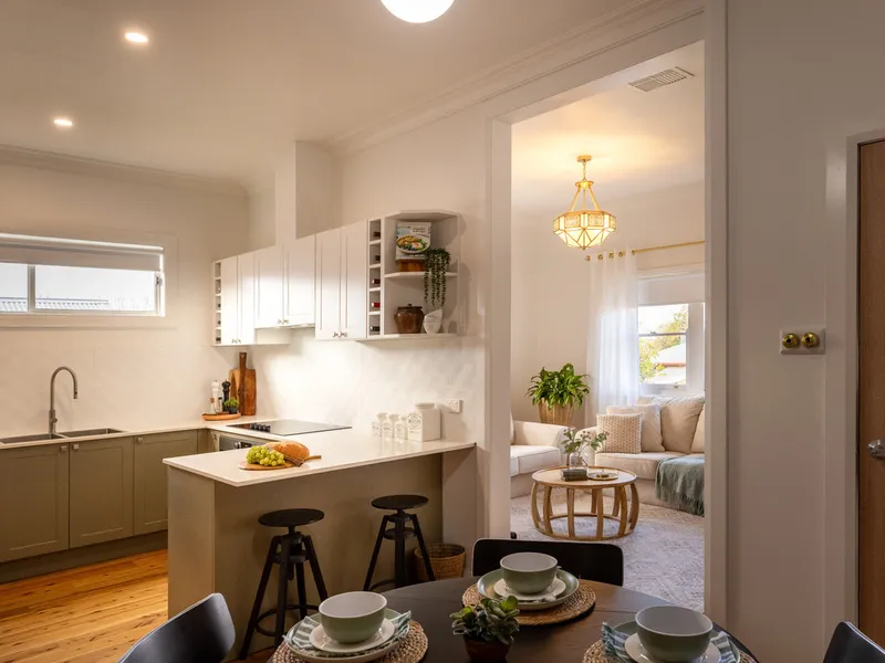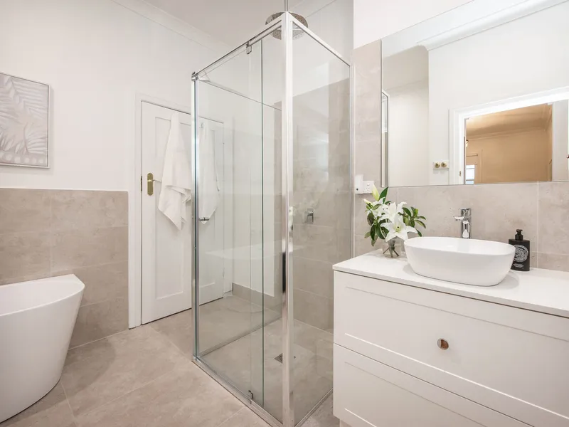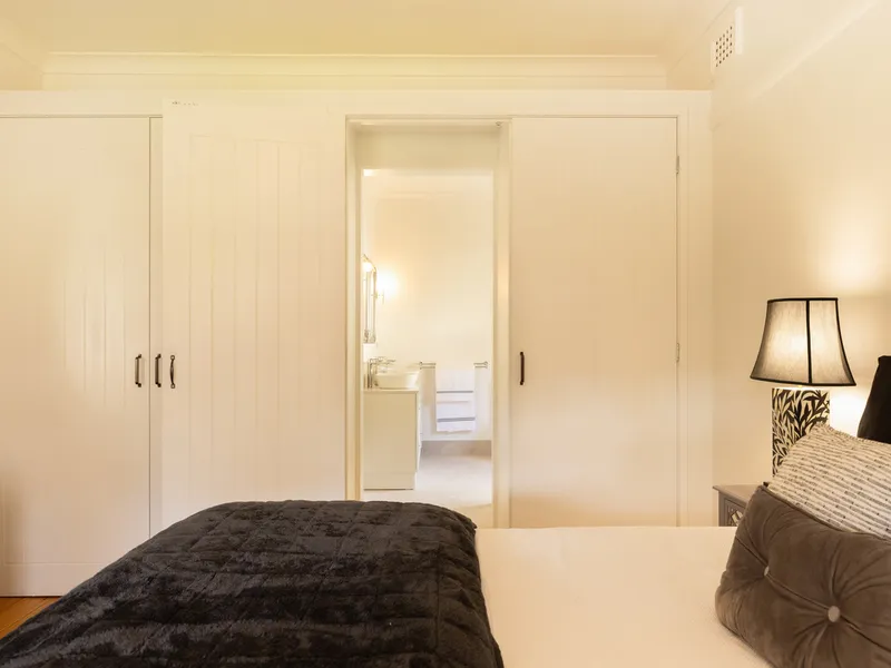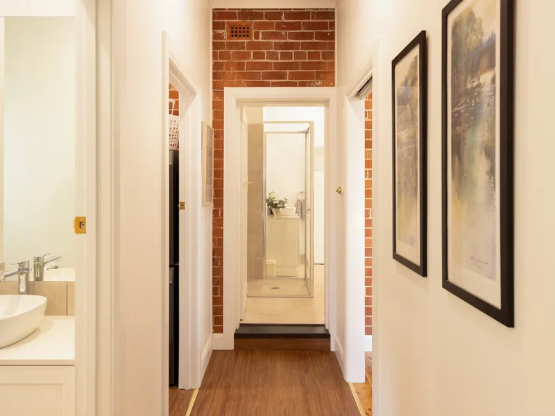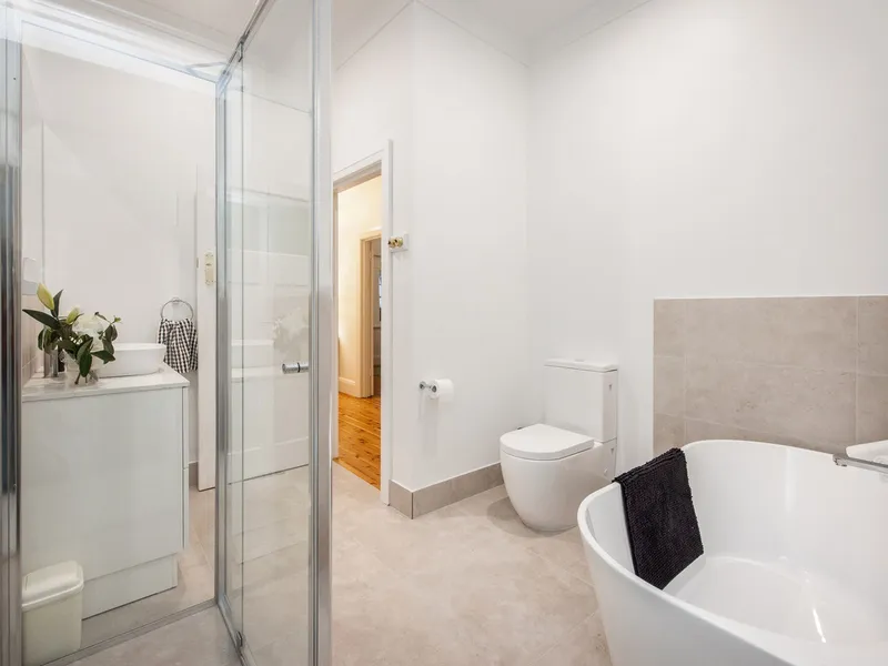Polished timber floors, high ceilings and a welcoming wide hallway create an immediate sense of warmth. The home offers three bedrooms with built-in robes, including a generous master with private ensuite. The main bathroom features a freestanding bath, adding a touch of elegance to everyday living.