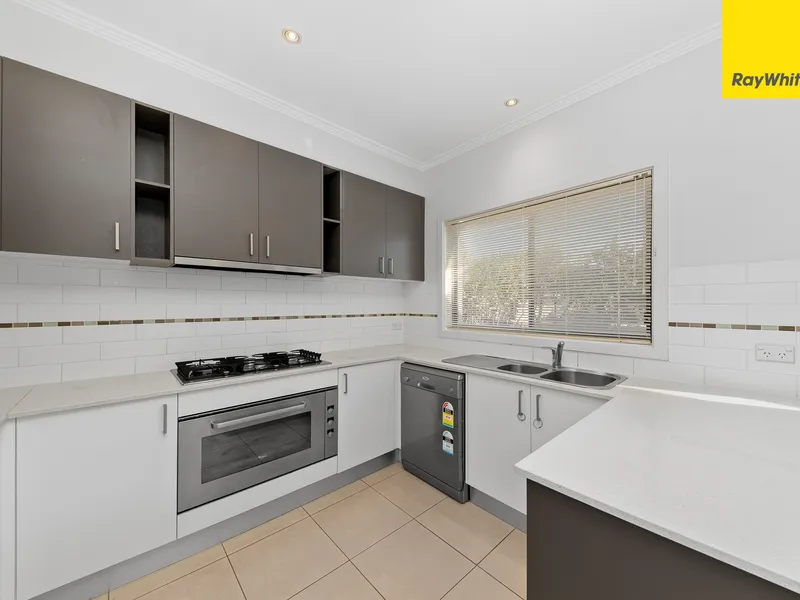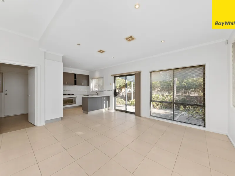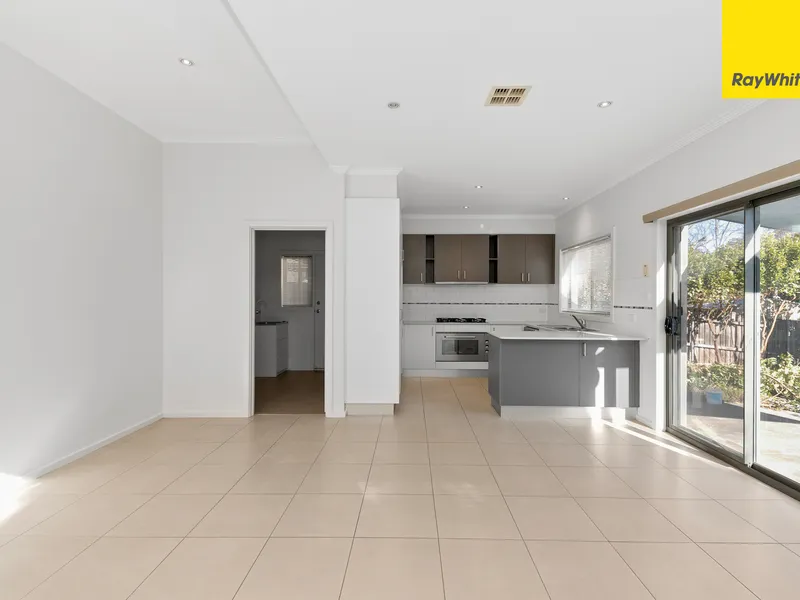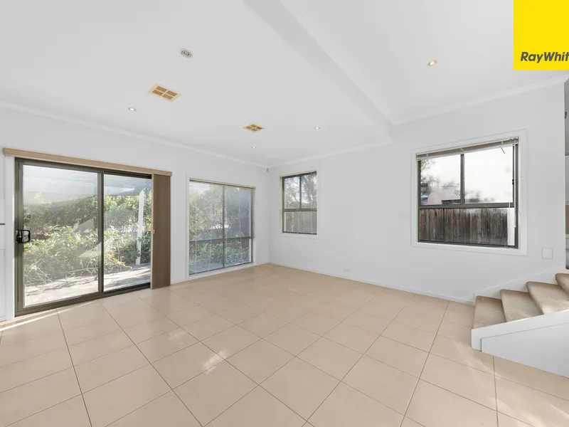 A separate carpeted lounge & dining area welcomes you into the home with large windows capturing the sunlight and framing the leafy front streetscape. At the heart of the lower level, a spacious open plan living area forms the hub of family life, with sleek tiled floors and lots of light flowing through from the generous sliding doors and windows that lead to the back yard.
