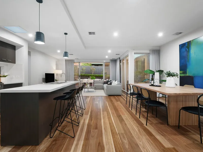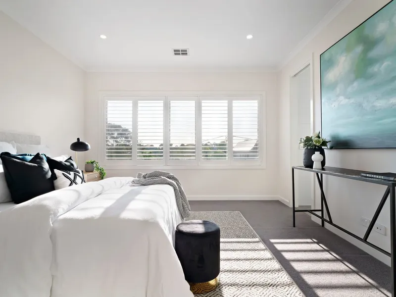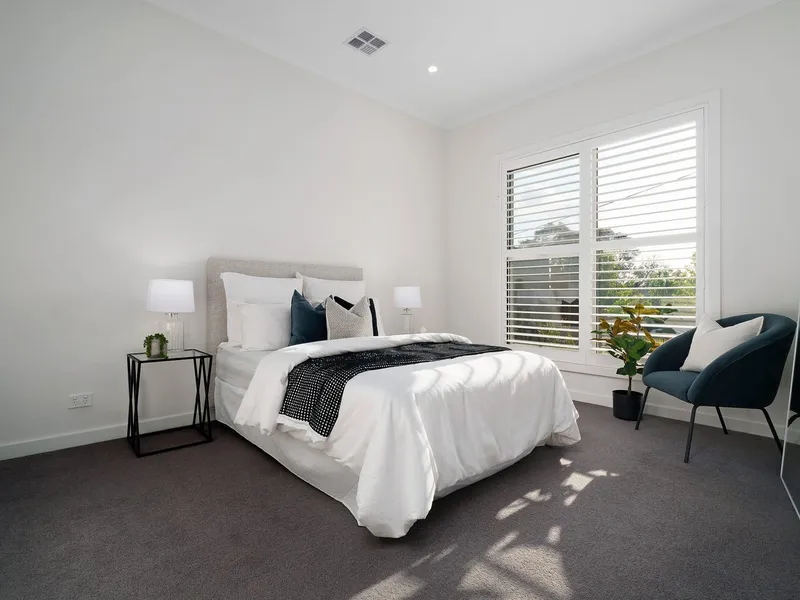 This luxurious 4 bedroom townhouse is now available. Upon entry, you are greeted by stunning floor boards and high ceilings, leading into a bright open plan living area, accented by a picturesque courtyard. A large kitchen, complimented by butler's pantry and allocated dining area, provides ultimate functionality in this grand family home. The first-floor bedroom is generous in size and highlighted by plantation shutters, walk in robe with double ensuite. Completing the outstanding ground level consists a powder room, impressive laundry with additional stairwell storage and garage access. A second living room and master bedroom awaits as you enter the second story of the property. This master is significant in size and again highlighted by plantations shutters, a spacious walk-in robe with remarkable double ensuite. Two further large bedrooms occupy the end of the second story, which share a striking main bathroom complete with double vanity, separate bath, shower and toilet as well as ample hallway storage. compromise of a single lock up garage with extra off-street parking in the driveway. Low maintenance garden. Large Rear undercover entertaining area.