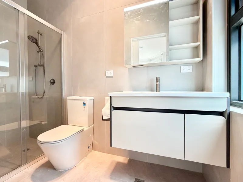 - Two fully tiled and renovated bathrooms with high-end fittings, vanity storage