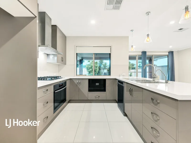 - Lots of kitchen bench space with pendulum lighting