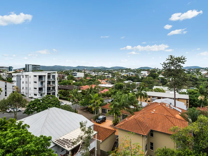 Perched high on Dunmore Terrace, this top floor residence captures beautiful natural breezes and sweeping suburban views across Auchenflower through to Mount Coot-tha, all while being just minutes from the Brisbane CBD.