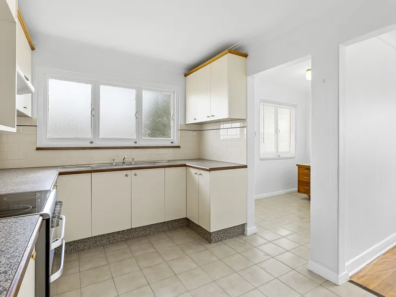 - Kitchen has electric combined cook top/oven & range hood with plenty of cupboard & bench space.