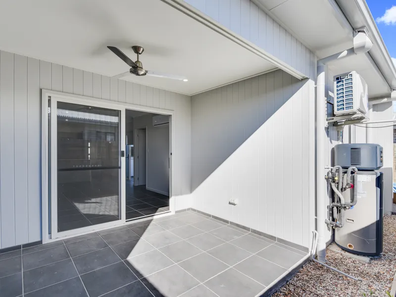 At the heart of the home, you'll find an open-plan kitchen, living, and dining area that flows seamlessly to two outdoor spaces. The first is an open-air courtyard, perfect for soaking up the morning sun, while the second is a covered entertaining area complete with a ceiling fan and lighting, ideal for year-round enjoyment.