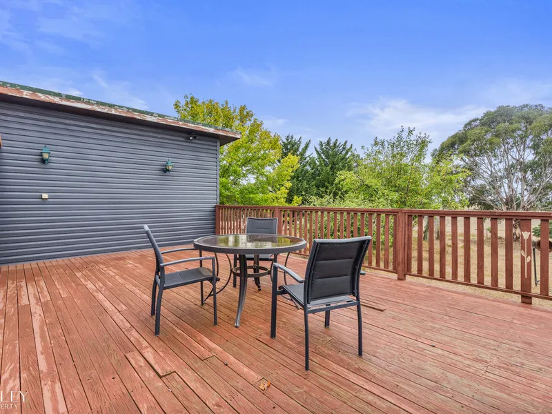 The main residence features a warm and welcoming layout with 4 comfortable bedrooms, three complete with built-in wardrobes. The heart of the home is the updated country-style kitchen, blending timeless character with modern convenience, flowing seamlessly into a generous tiled living area. A wood-fired heater creates the perfect ambiance for cozy evenings, while air-conditioning ensures comfort during the warmer months. Mediterranean-inspired bathroom updates add a touch of elegance and style, enhancing the home's overall appeal. Adding further value and versatility is a well sized deck, ideal for entertainment.