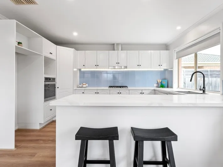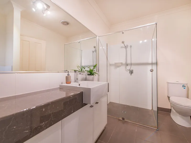 Naturally bright and open plan, the kitchen, dining and family room with North-facing orientation is certain to win the approval of those who love to entertain. Serving as a wonderful connection between inside and out, a sliding door opens onto a side alfresco zone before flowing out to the backyard.