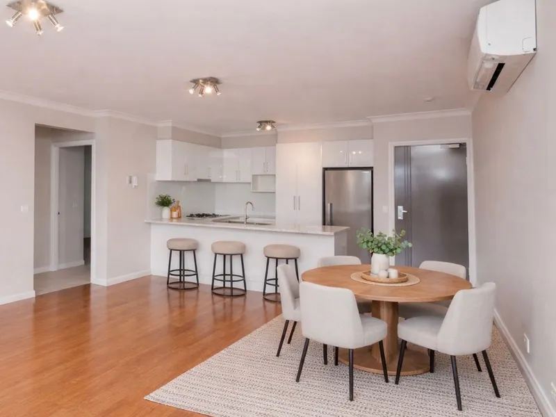 This renovated home with a street front position provides optimal comfort and style with dual living zones. Easy to enjoy single level design with a spacious ambience. A generous formal lounge room that’s detailed with contemporary flooring and windows facing into the landscaped front yard.