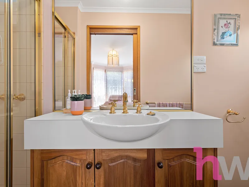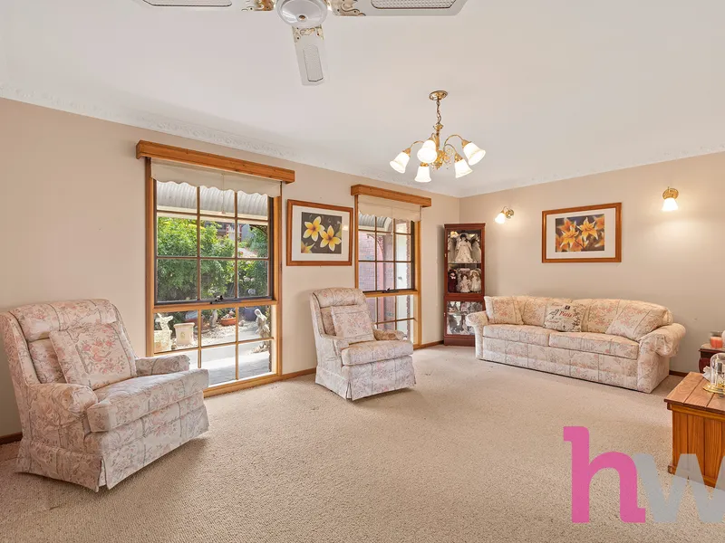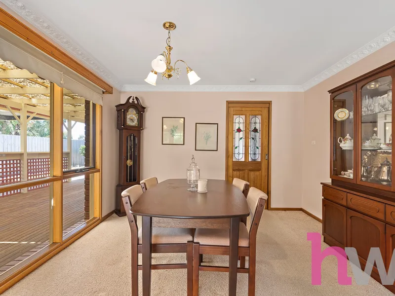 Featuring 3 bedrooms with BIRs including a master with ensuite, plus two living areas, the home is complemented by a gas wall heater, air conditioning, ceiling fans and solar panels to help reduce running costs. The kitchen is well equipped with a Westinghouse electric oven, gas cooktop and new dishwasher.