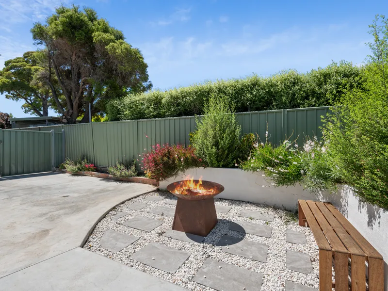 - Low-maintenance rear entertaining area with fire-pit
