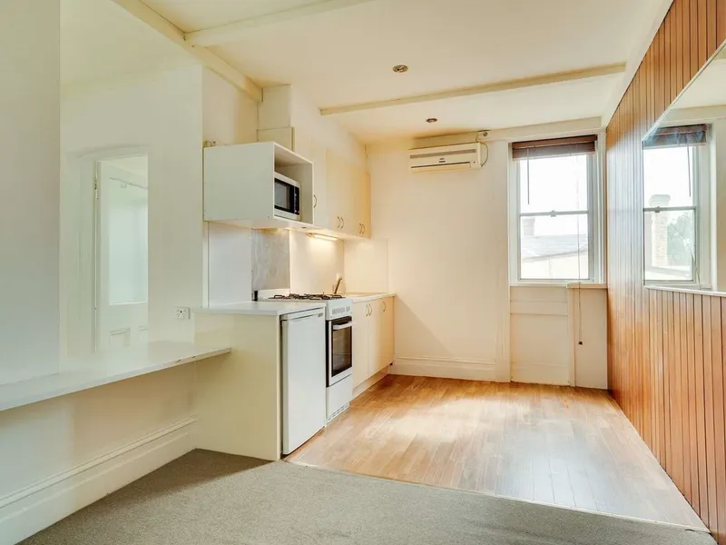 Original timber floorboards and high ceilings meet modern comforts including ceiling fans and refrigerated heating and cooling for year-round ease. At the heart of the home is the standout custom design kitchen complete with stone benchtops, undermount sink, induction cooktop, dishwasher and quality appliances. The open-plan flow into the meals and living zone creates a relaxed and functional everyday space.