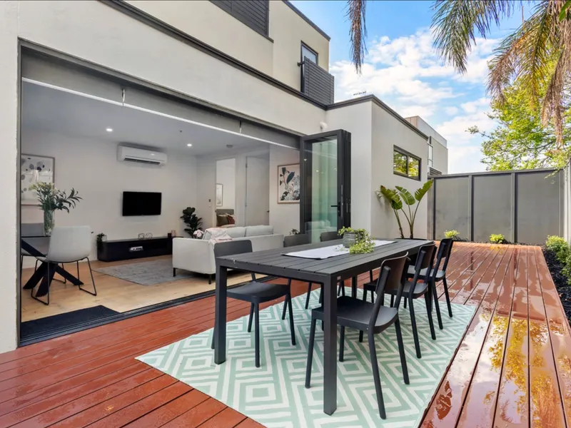 • Open-plan living area with bi-fold doors to a wraparound decked courtyard (Backyard size close to 70sqm)