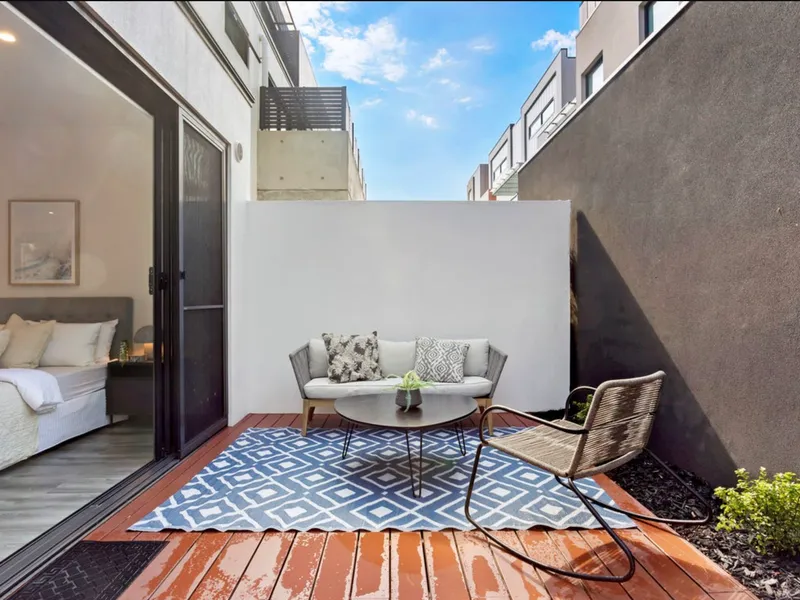This ground-floor two-bedroom apartment is located in the heart of Bentleigh and offers a practical layout with generous indoor and outdoor living spaces. The apartment features a light-filled living area with direct access to a large wraparound courtyard, providing comfortable everyday living in a convenient location.