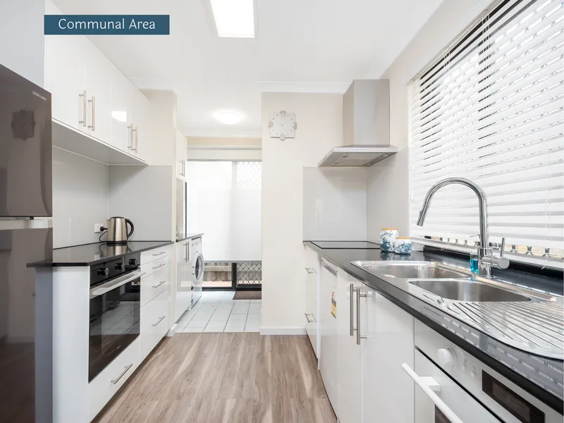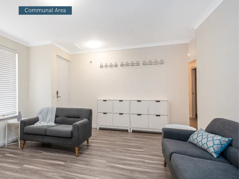 1/1 Wyong Road, Bentley – Ideal co-living location close to Curtin University, public transport, local shops, and major routes to Perth CBD. Quiet residential street with easy access to parks and daily amenities. Enjoy your air conditioned, private, fully furnished room with ensuite and kitchenette in co-living home designed for your comfort and modern convenience. Shared kitchen, dining, living zones, laundry, outdoor area. Practical living for students and professionals seeking convenience and connectivity. Live close. Commute less. Share better.