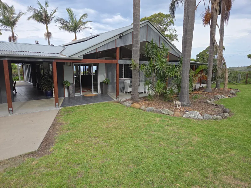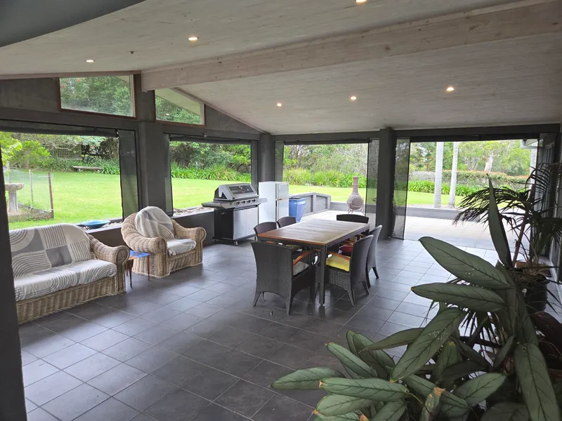 3 bedrooms, each with their own views and built-in wardrobes; 2 bathrooms; a kitchen equipped with gas cooking and ample bench space; a loungeroom with a brand new air conditioner; a dining area; and an internal laundry with separate toilet. Additional highlights include tiled flooring, floorboards & carpet, ceiling fans, a beautiful decking area with stunning views at the back of the house, and an undercover entertaining area with a new BBQ. There are also 2 parking spots, a fireplace, and tank water. The property boasts beautiful gardens and lawns, with maintenance included. The house is fully furnished with new and modern items. It is NBN/Starlink compatible and conveniently located near Kellys Lake, Grey Rocks, and the Bingie Dreaming Track.