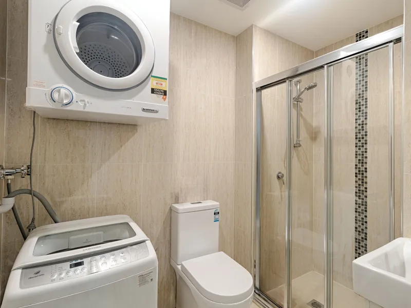 Designed with modern living in mind, the apartment features high-quality finishes throughout, including stone benchtops, premium DeLonghi appliances, and stylish ceramic tiling.