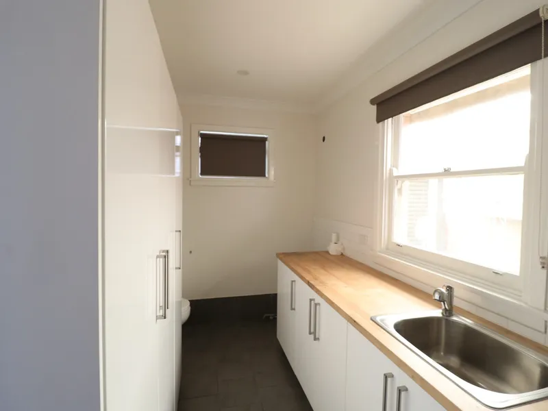 * Separate laundry with extra toilet and ample storage space.