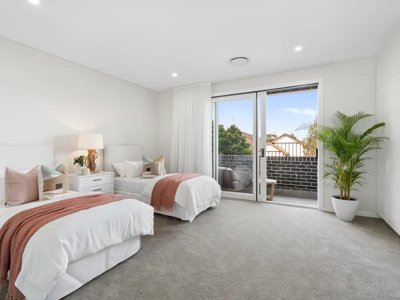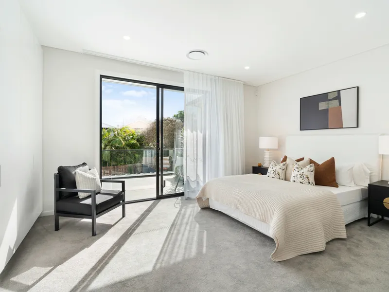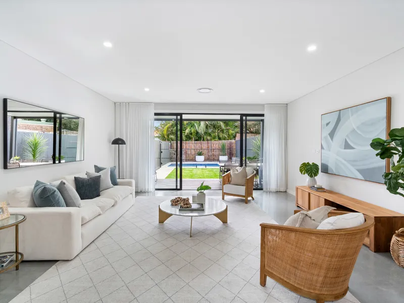 A striking facade, streamlined interiors and refined minimalism create a bold statement in this near new built beach house in a coveted setting footsteps to South Bondi village. Freestanding to the north, the two-storey home captures the essence of urban coastal luxury with a design that celebrates relaxed indoor/outdoor entertaining. A generosity of space and robust palette of materials is perfectly suited to family living with two master sized bedrooms and one single sized bedroom on the upper level and a sunny landscaped garden with a lush lawn and sparkling pool giving it a resort-like feel. With a strong design vision and careful attention to detail, the luxurious beachside sanctuary captures wide district views from the upper level balconies with ducted air and underfloor heating for year round comfort. With Bondi Road's dining scene and neighbourhood hub at the end of the street, this is a perfect opportunity to live local and shop local on a family friendly avenue equidistant to Bondi's surf culture and the glamour of Tamarama.