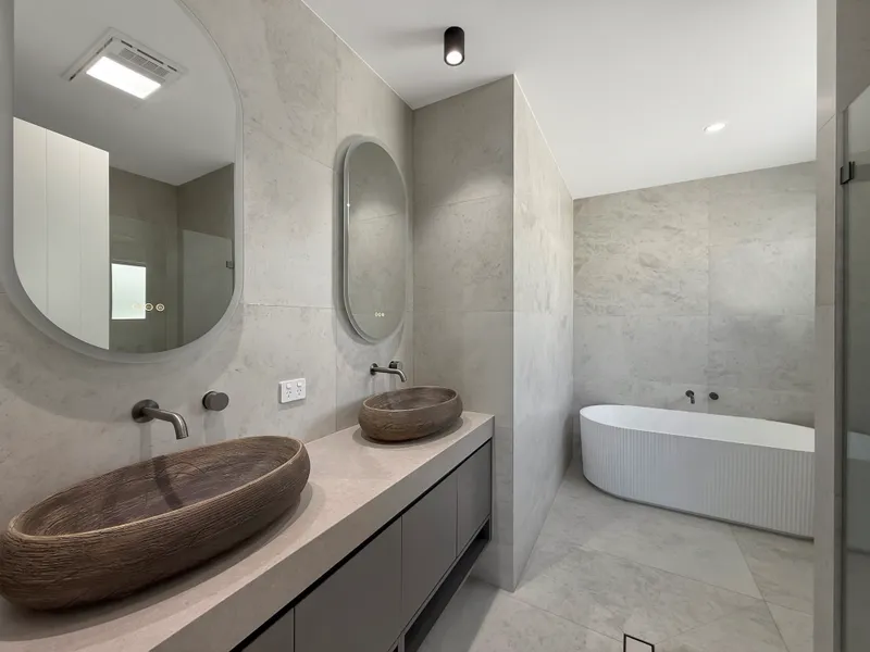 • Main master bedroom with large walk-in robe, ensuite with bath & double vanity & ceiling fan.