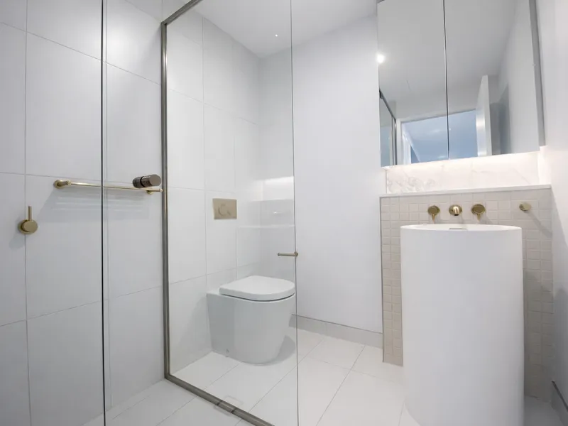 Stylish bathroom with separate wet and dry areas, featuring high-quality fixtures