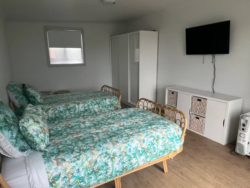 - Bedroom 3 - 2 x King Single Beds - extremely large room with a sliding door to a small deck + Built-ins