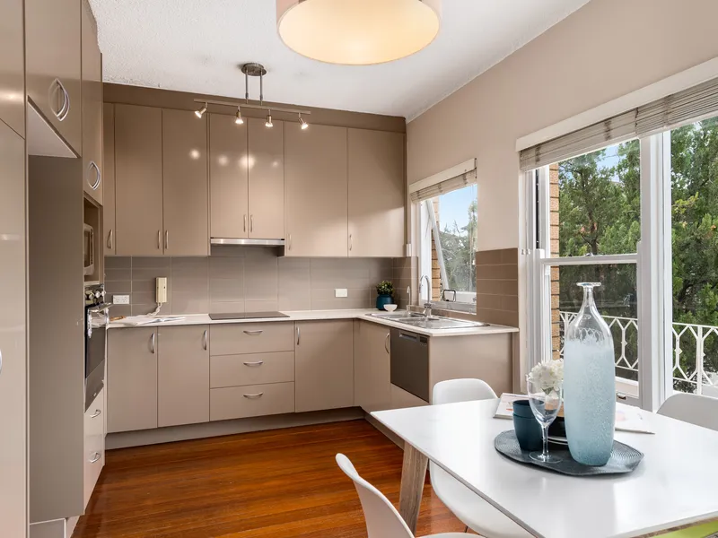 - Updated open plan kitchen leading to a second spacious balcony