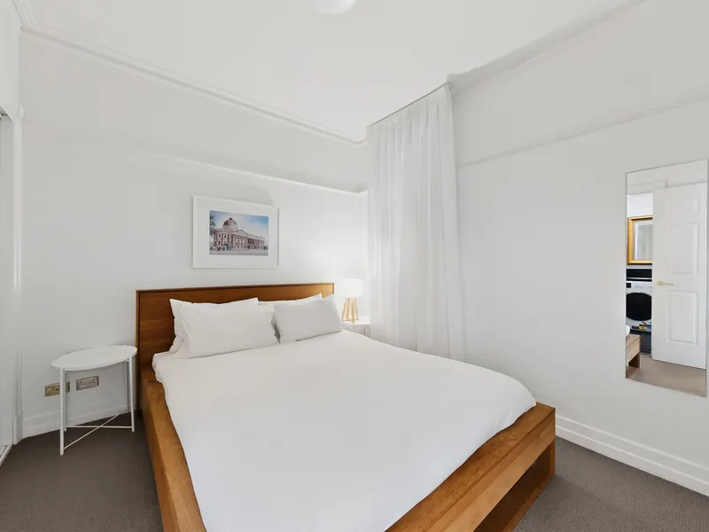 The apartment is ideal for professionals seeking a low-maintenance lifestyle in an unbeatable location.