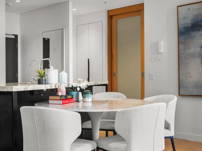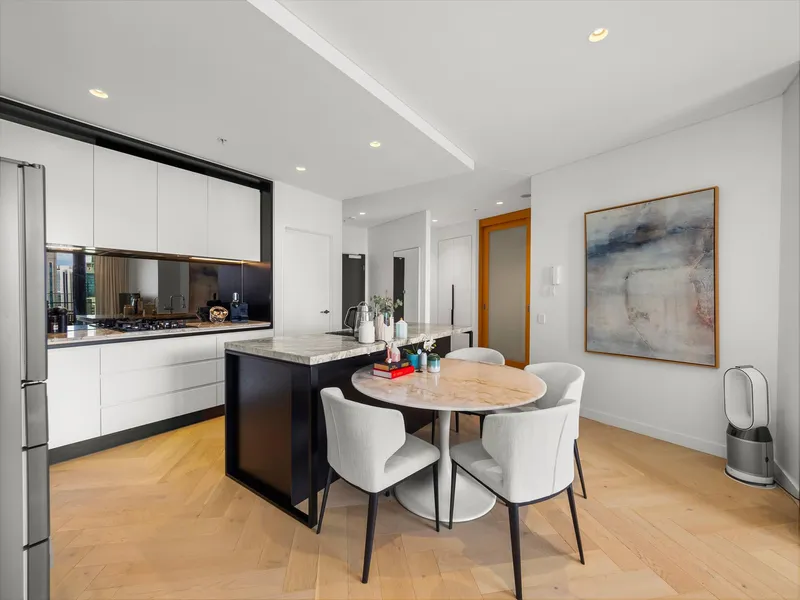 Positioned high on Level 31, this fully furnished Mary Lane residence offers over 100sqm of refined designer living with breath-taking floor-to-ceiling views and display-home quality interiors throughout.