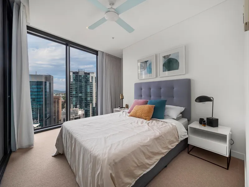 Residents enjoy exclusive access to Level 37 rooftop facilities including an infinity pool, sun deck, fully equipped gym, BBQ entertaining areas and a private function room, all set within one of Brisbane CBD's most prestigious addresses.