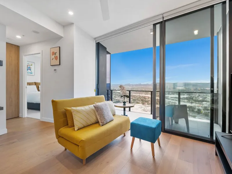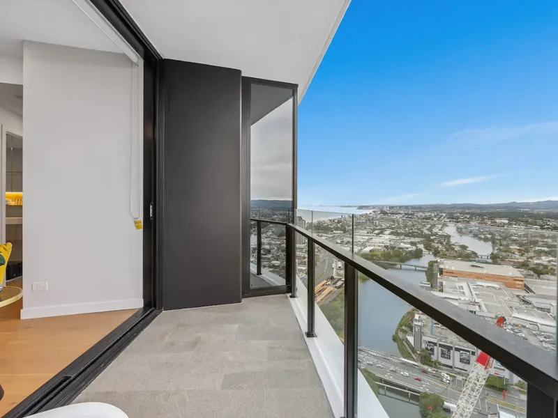 Featuring a designer kitchen with stone benchtops, premium appliances, and floor-to-ceiling windows, the space is bathed in natural light and elegance. Enjoy hotel-style amenities—pool, spa, gym, and more—right at your doorstep, just steps from The Star Casino and moments from the beach, Pacific Fair, and the G-Link tram. Coastal luxury at its finest!