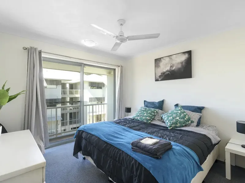 The open-plan living and dining area flows seamlessly onto the oversized balcony where you can enjoy sweeping ocean views and sea breezes. The well-appointed kitchen features ample storage, stone benchtops and a breakfast bar, perfect for everyday living or entertaining guests.