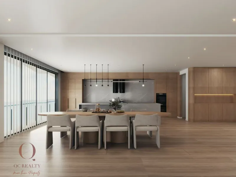 The climate-responsive architecture maximizes natural light, ocean breezes, and uninterrupted panoramic views of the Pacific Ocean and coastline. Inside, the expansive open-plan living and dining area is enhanced by floor-to-ceiling windows, creating a bright and welcoming atmosphere. The sleek designer kitchen, fully equipped with high-end appliances, is ideal for effortless entertaining or relaxed home dining.