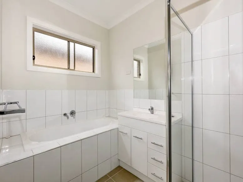 Designed with functionality in mind, the home features a light-filled open plan kitchen, meals and living area, complete with sleek stainless steel appliances, dishwasher, and easy-care tiled flooring throughout. Glass sliding doors open seamlessly to a private courtyard-style backyard — ideal for relaxing or entertaining with minimal upkeep.