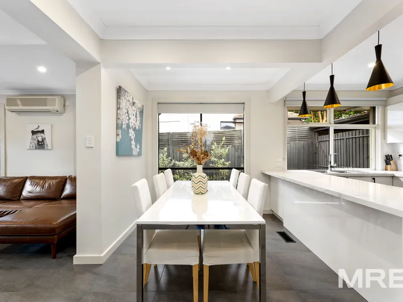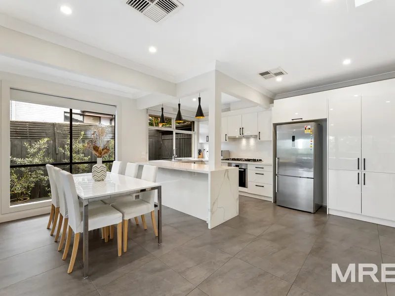 Offering this striking low maintenance abode in a securely gated and beautifully maintained low-rise complex. The floorplan boasts a substantial open plan area which is the heart of the home. The north facing light-filled zone houses an expansive living-dining space and a modern kitchen with contrasting cabinets and benchtops, a tiled splashback and quality appliances.