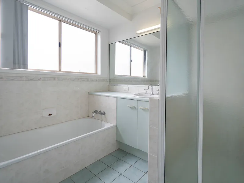 The home features a separate bathroom complete with both a bathtub and a separate shower for added convenience. The functional kitchen provides everything you need for meal preparation while overlooking the outdoor space.