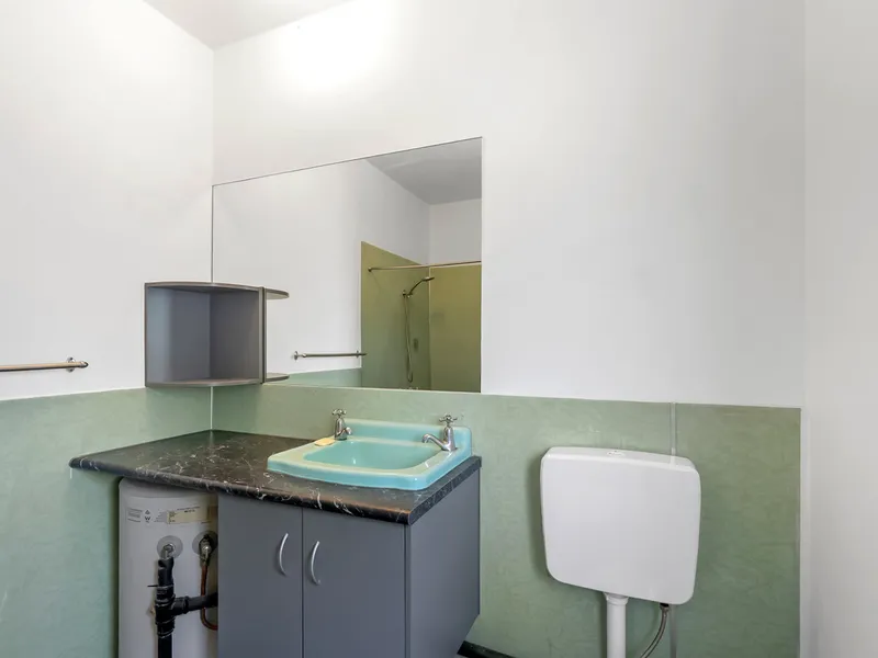 In a first floor position (walk-up), both bedrooms are well proportioned, with combined living and dining and full kitchen (including fridge). Split system AC to living and wall air-conditioner to main bedroom. Fans throughout.