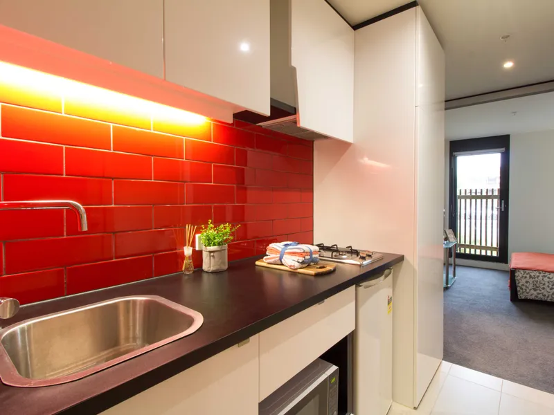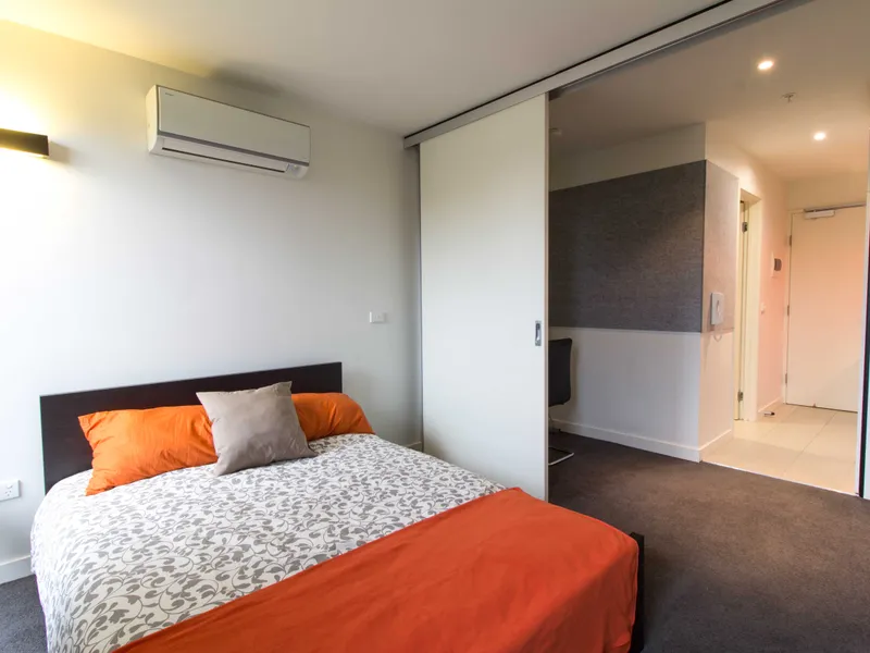 This furnished one bedroom apartment comes with intercom security entrance, a double bed, full kitchen with gas cooking, electric heating, microwave and fridge, cutlery and crockery, stylish bathroom, meals table and chairs, study desk and colour television.