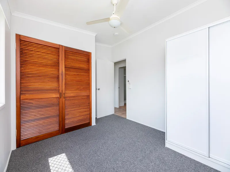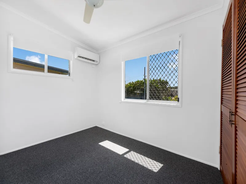 The home offers three well-sized bedrooms, all with built-in wardrobes and ceiling fans, with the main bedroom also featuring air conditioning.