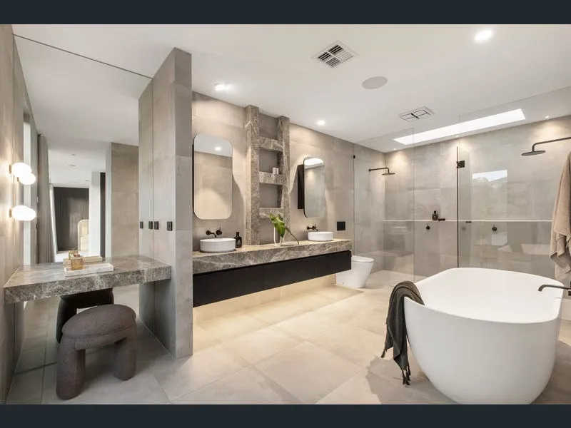From the impressive timber pivot door to the lofty ceilings, designer lighting, striking spiral staircase and lavish natural stone finishes, nothing has been compromised to create an unforgettable family domain. Limed oak floors flow through the inviting entrance foyer to a fabulous, fitted home office and the palatial open plan living and dining room with a concealed cocktail bar. A state-of-the-art kitchen is a chefs dream with its Tundra Grey marble, Miele appliances, integrated fridge freezer and full butlers pantry/2nd kitchen. Glass sliders connect the living area to the landscaped private garden with picturesque, heated pool, undercover BBQ terrace with wok burner and sink and a sensational pool house or guest accommodation complete with bar, bar fridge, projector and screen, and an adjacent bathroom. Lavish family accommodation comprises a gorgeous downstairs bedroom with designer en suite and walk in robe while upstairs there is the sumptuous main bedroom with deluxe dressing room and opulent en suite, two additional king-sized bedrooms with robes, desks and stylish en suites and a spacious retreat.Enjoying a prized location just a short walk to Through Road Shopping Strip, Burwood Village shops and restaurants, Toorak & Riversdale Road trams, Hartwell Train Station and Lynden Park, it is comprehensively appointed with an alarm, CCTV, video intercom, zoned RC/air-conditioning, remote blinds/curtains, indoor-outdoor speakers, powder-room, mudroom, laundry, irrigation and internally accessed double garage. Land size:760sqm approximately