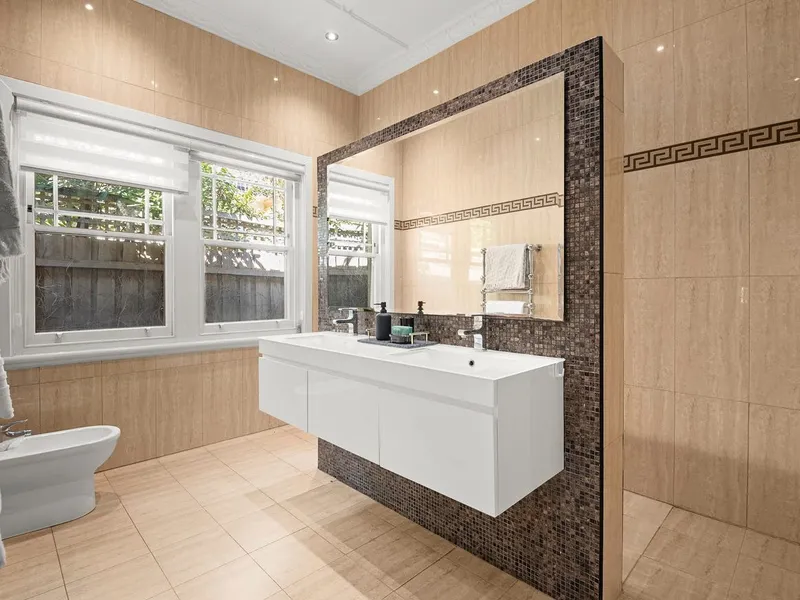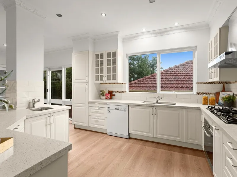 Positioned along one of Camberwell’s most connected addresses, this substantial five-bedroom residence offers generous family proportions, flexible living zones and exceptional convenience. Designed to accommodate modern family life, the home provides well-separated living and bedroom spaces alongside easy access to transport, retail and local amenities.