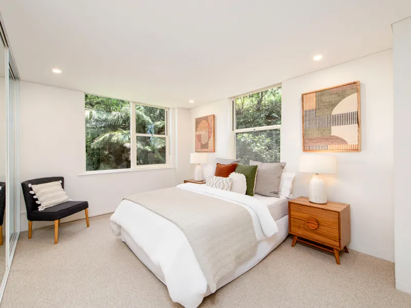 Tucked quietly at the rear of the highly regarded Cammeray Towers and surrounded by greenery, this oversized second-floor apartment feels more like a private retreat than an apartment. With windows on three sides, the home is filled with natural light and cross-ventilation, while recent updates make it fresh, welcoming and ready to enjoy.