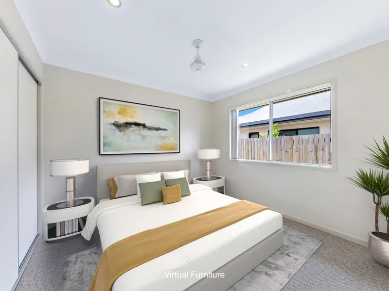 At the heart of the home is the modern gourmet kitchen with stone benchtops, ample storage, and plenty of room to cook and entertain. This flows seamlessly into the open-plan living and dining area, creating a bright and welcoming space that connects beautifully to the outdoors.