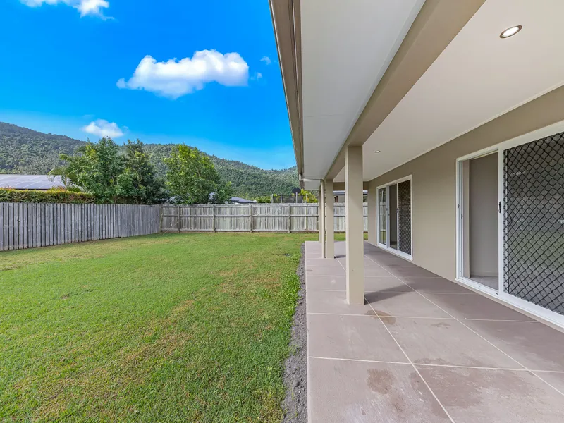 Step outside and you'll find a covered patio area perfect for entertaining, weekend BBQs, or simply enjoying the tropical breeze. The large, flat backyard offers plenty of room for kids to play and pets to roam, all while being low-maintenance and easy to care for.