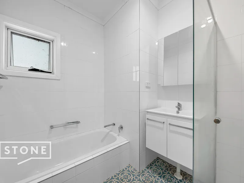 - Renovated bathroom equipped with updated shower, bath and separate toilet